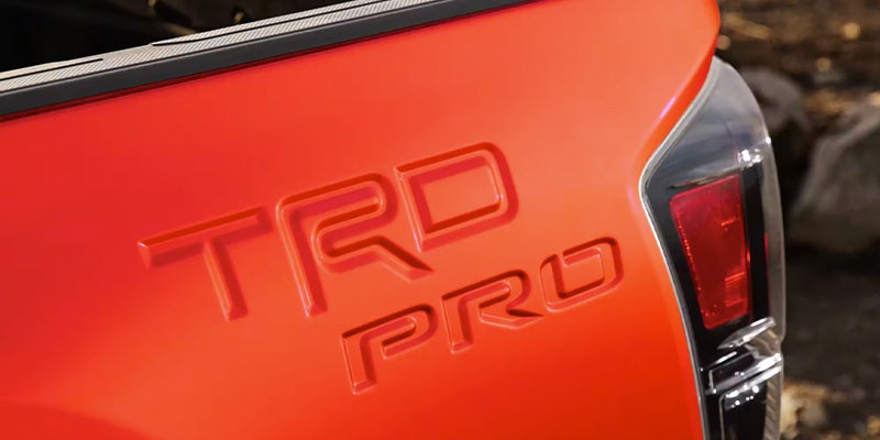 The 2023 Toyota Tacoma has several trim levels: SR, SR5, TRD Sport, Trail Special Edition, TRD Off-Road, TRD Pro, and Limited. Available packages like the SX Package on the SR5 add exclusive features such as 16-inch Black wheels, black overfenders, and an SX bed graphic. The Trail Special Edition features a front grille with a unique bronze finish. Toyota tailgate badging features the Tacoma logo, while the grade-specific taillights will ensure you're visible from every angle.